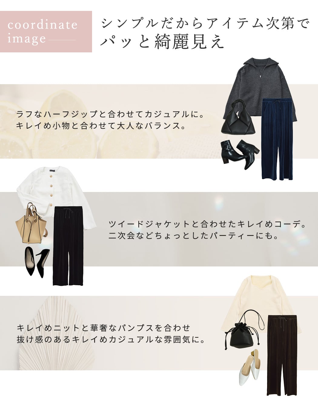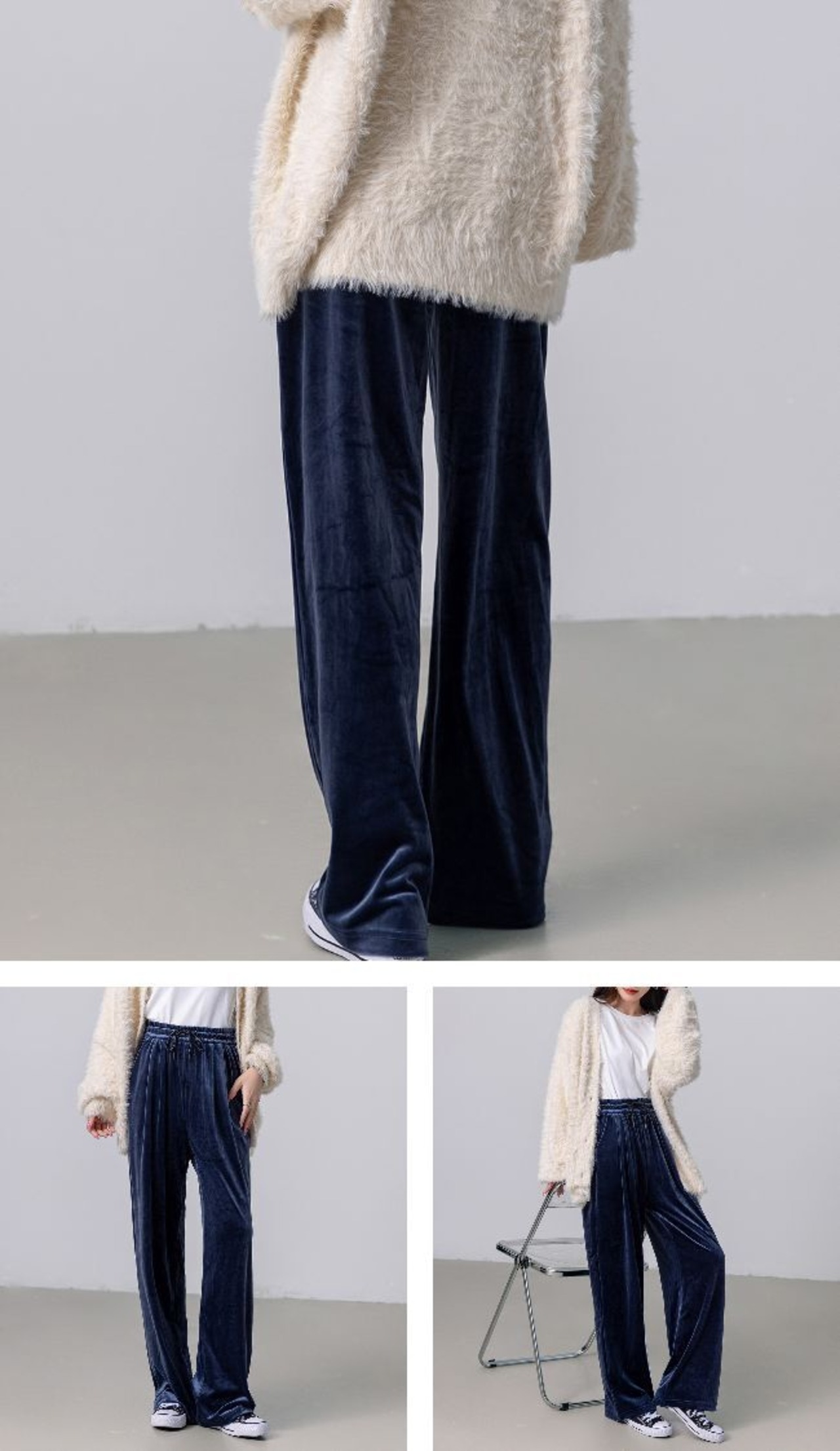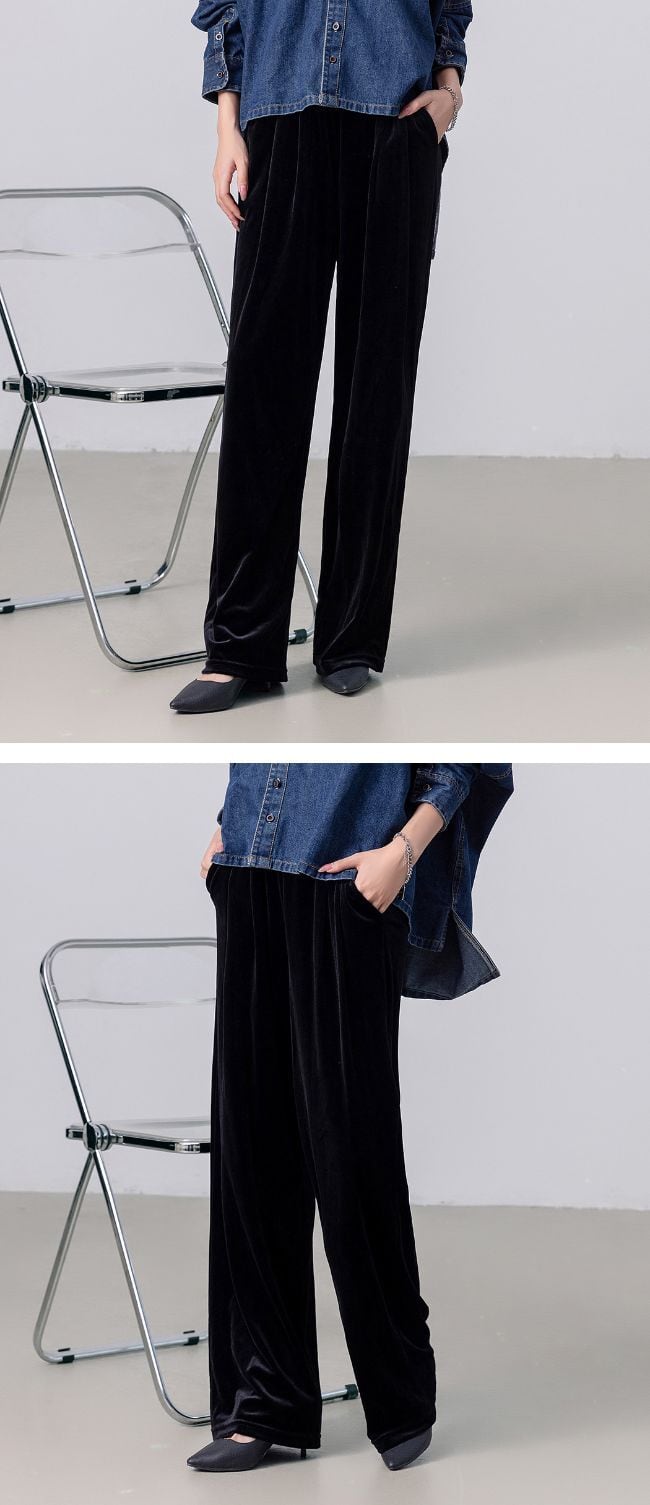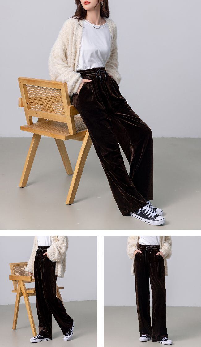ベロア特有の落ち感が縦ラインを強調し自然にスタイルアップを叶えます