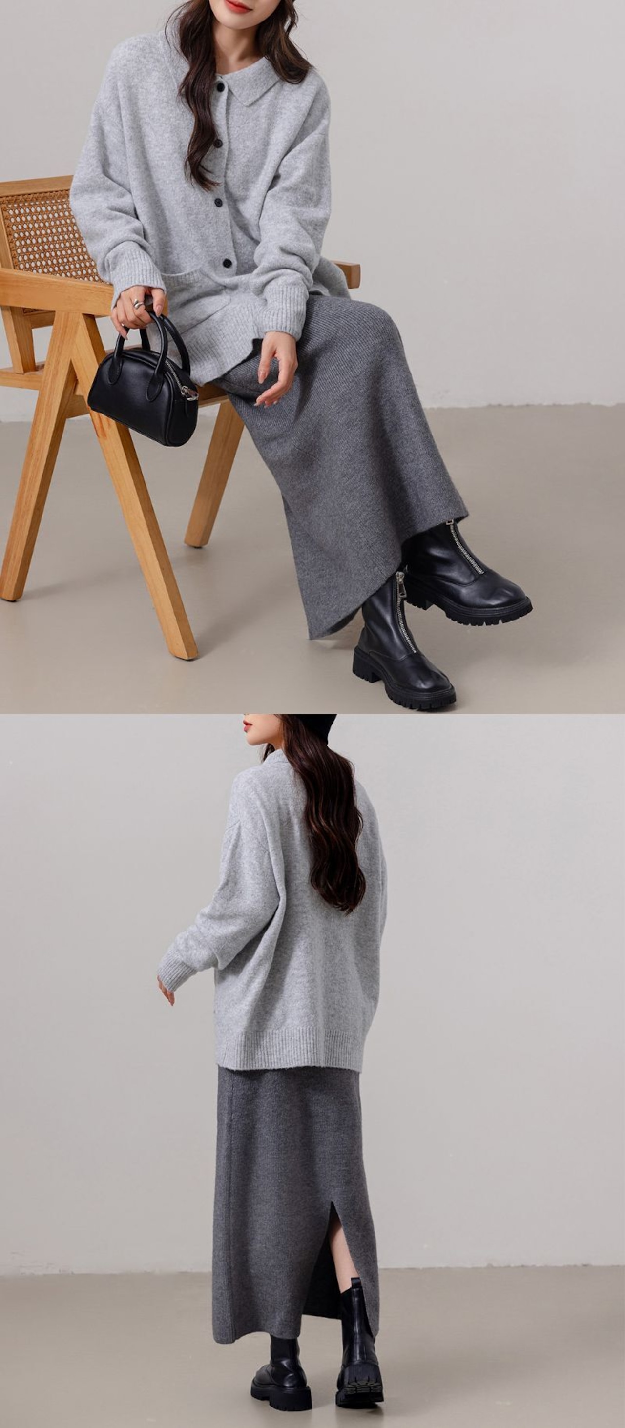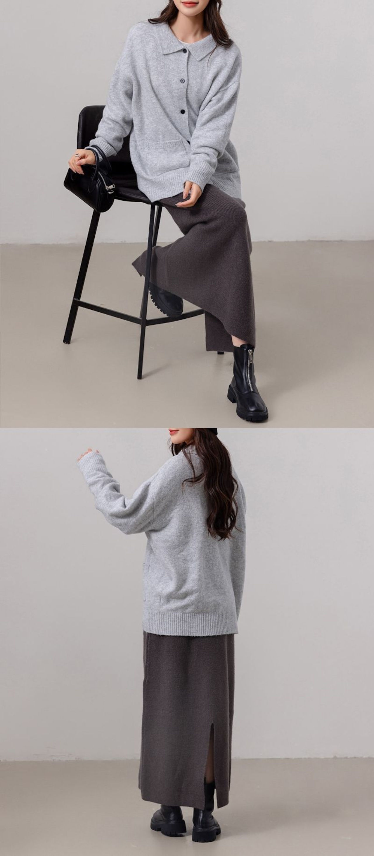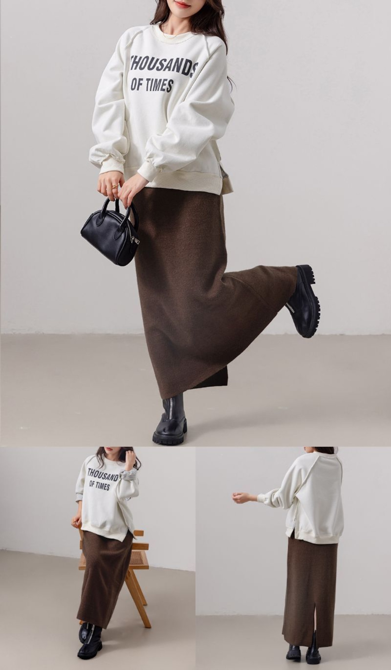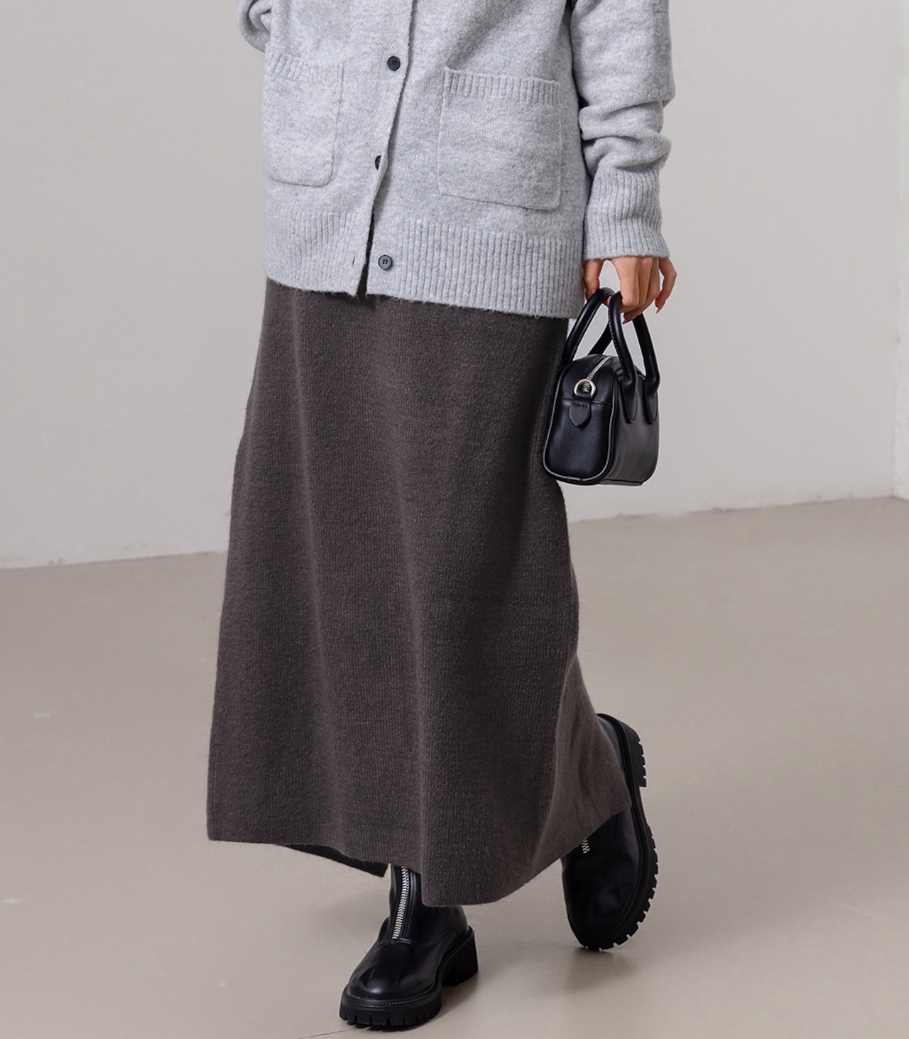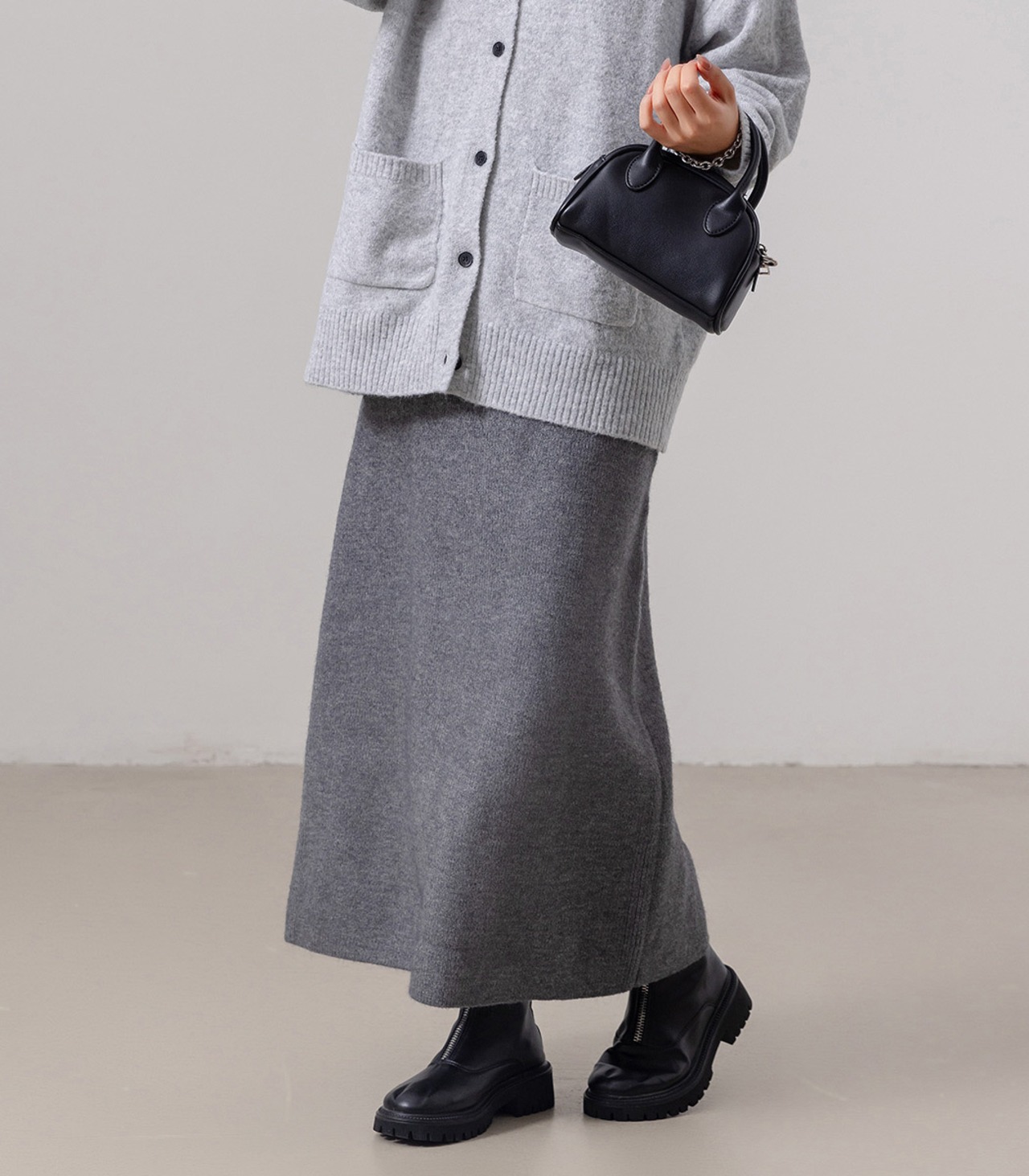 少し毛羽立ちのある暖かいニットなので秋冬コーデにピッタリ。
