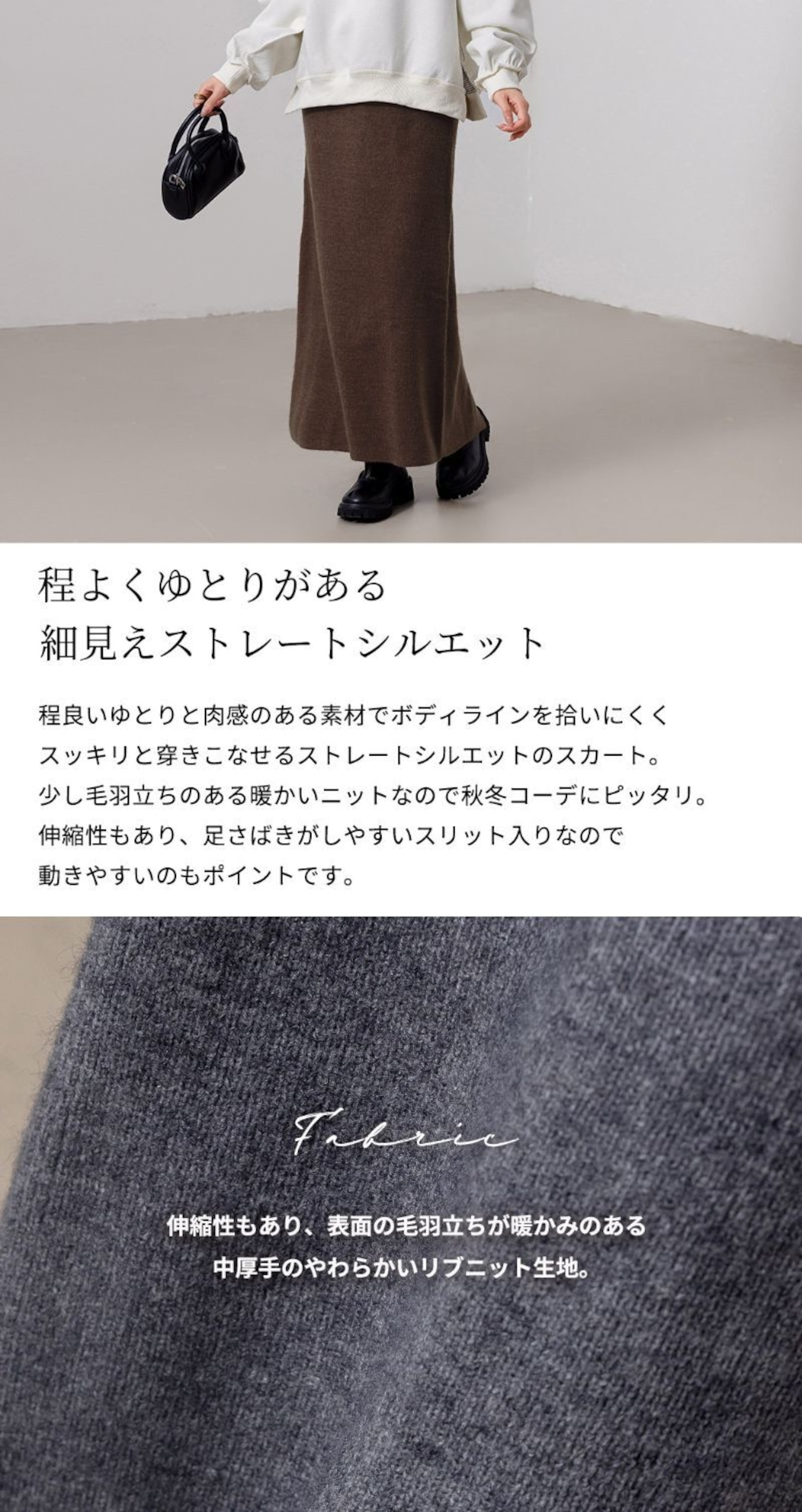 スッキリと穿きこなせるストレートシルエットのスカート。